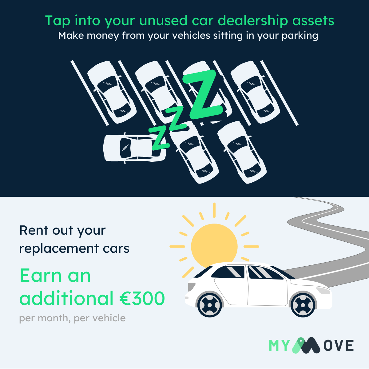 As a car dealership, you can take care of your customer’s car but also their transportation needs such as vehicle on demand and mobility on demand. The good news is that you have everything you need in your parking to make an additional 300 euros per month per vehicle. You can use your existing pool of replacement cars or demo cars to develop new rental services or have dedicated rentals.